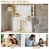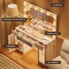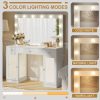 - 💟【Adjustable LED Lighting】The vanity table is equipped with two switches to control the bulb on the mirror and the light strips in the drawers and cabinets. Both the bulb and the light strip offer 3 adjustable modes and adjustable brightness levels, providing a unique and pleasant experience while ensuring practicality.