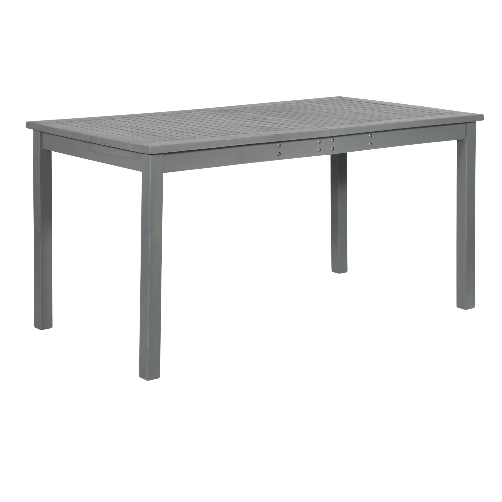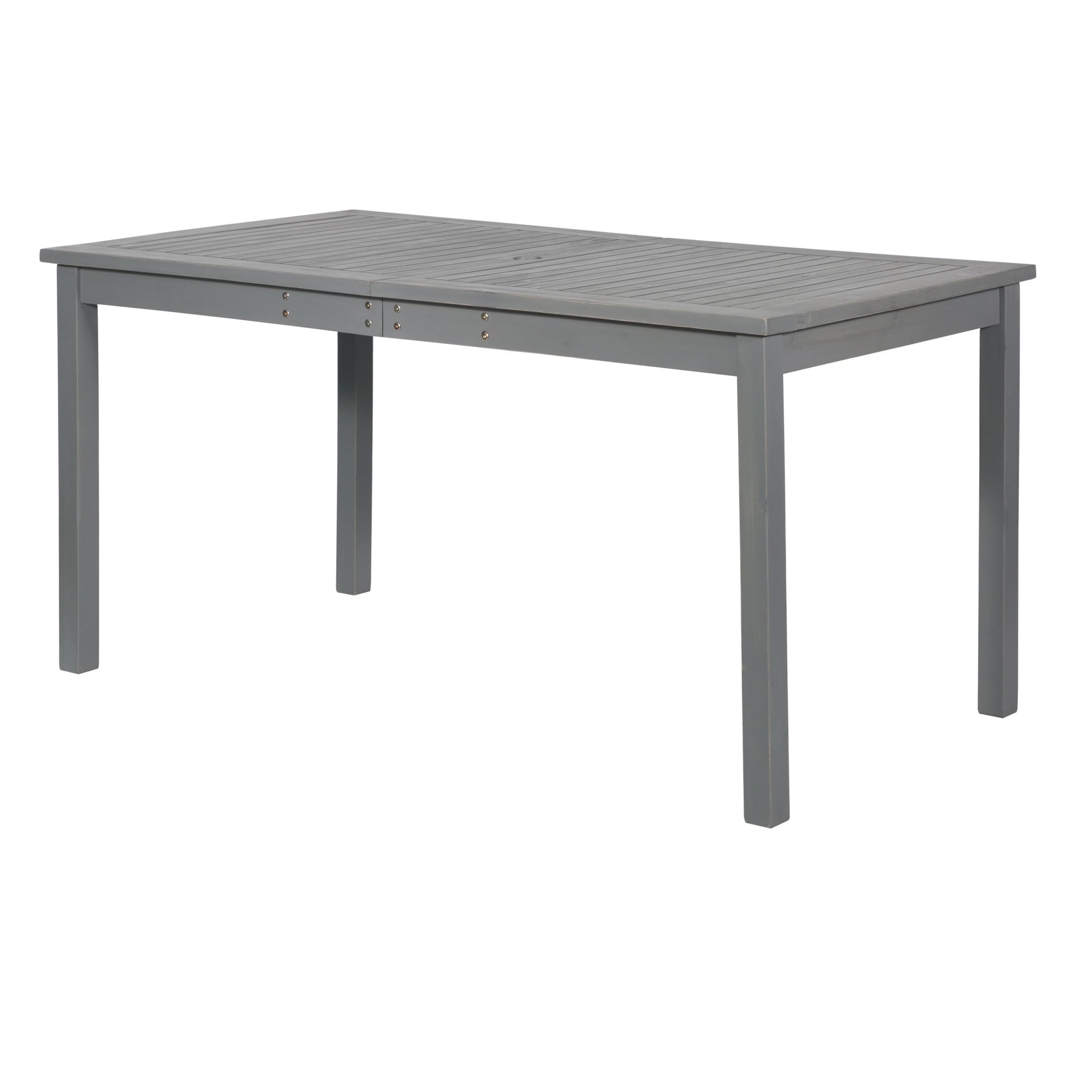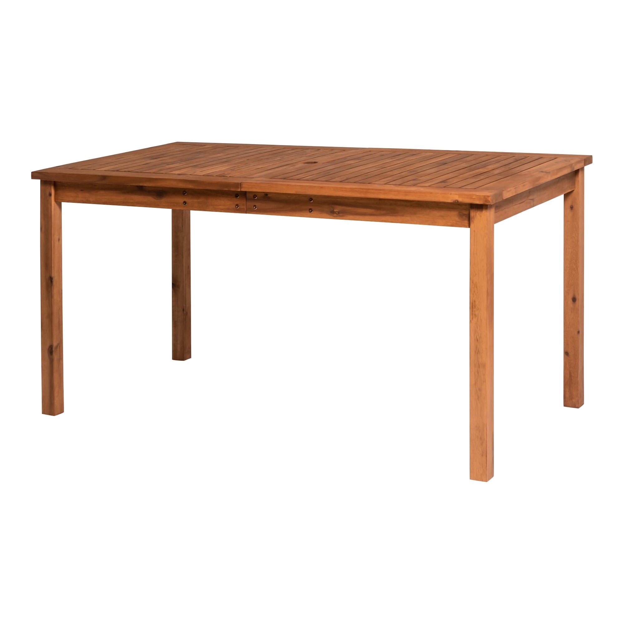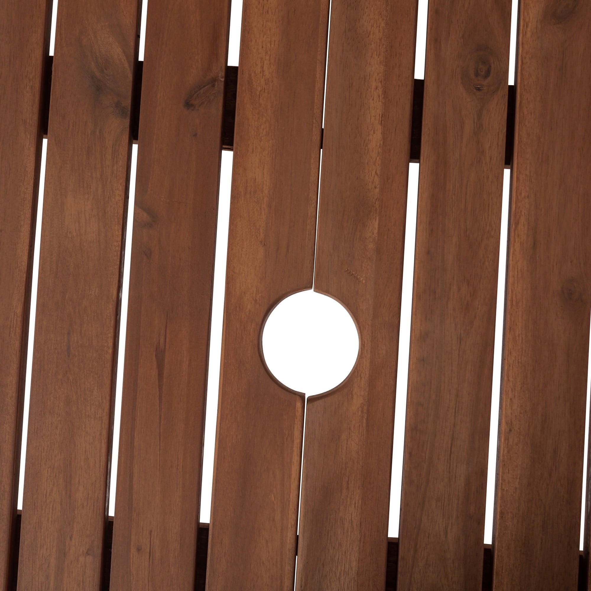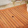 Create a simple yet inviting dining space on any deck or patio with this charming outdoor dining table. Constructed with a beautiful slatted surface from solid acacia hardwood, this table is naturally sturdy and stylish. If needed, place a large umbrella in the small, round opening in the center of the table for shade. Relax and enjoy the outdoors with this exceptional modern outdoor wood table.
