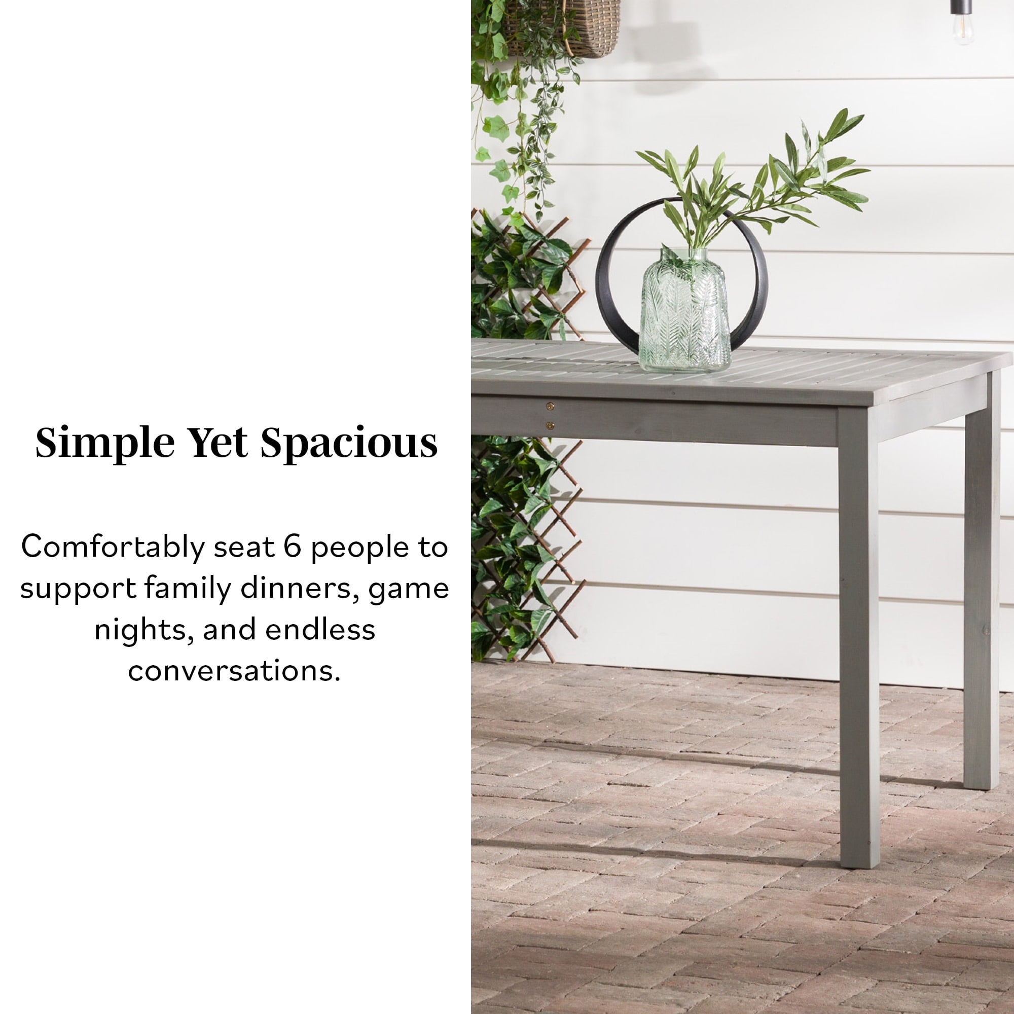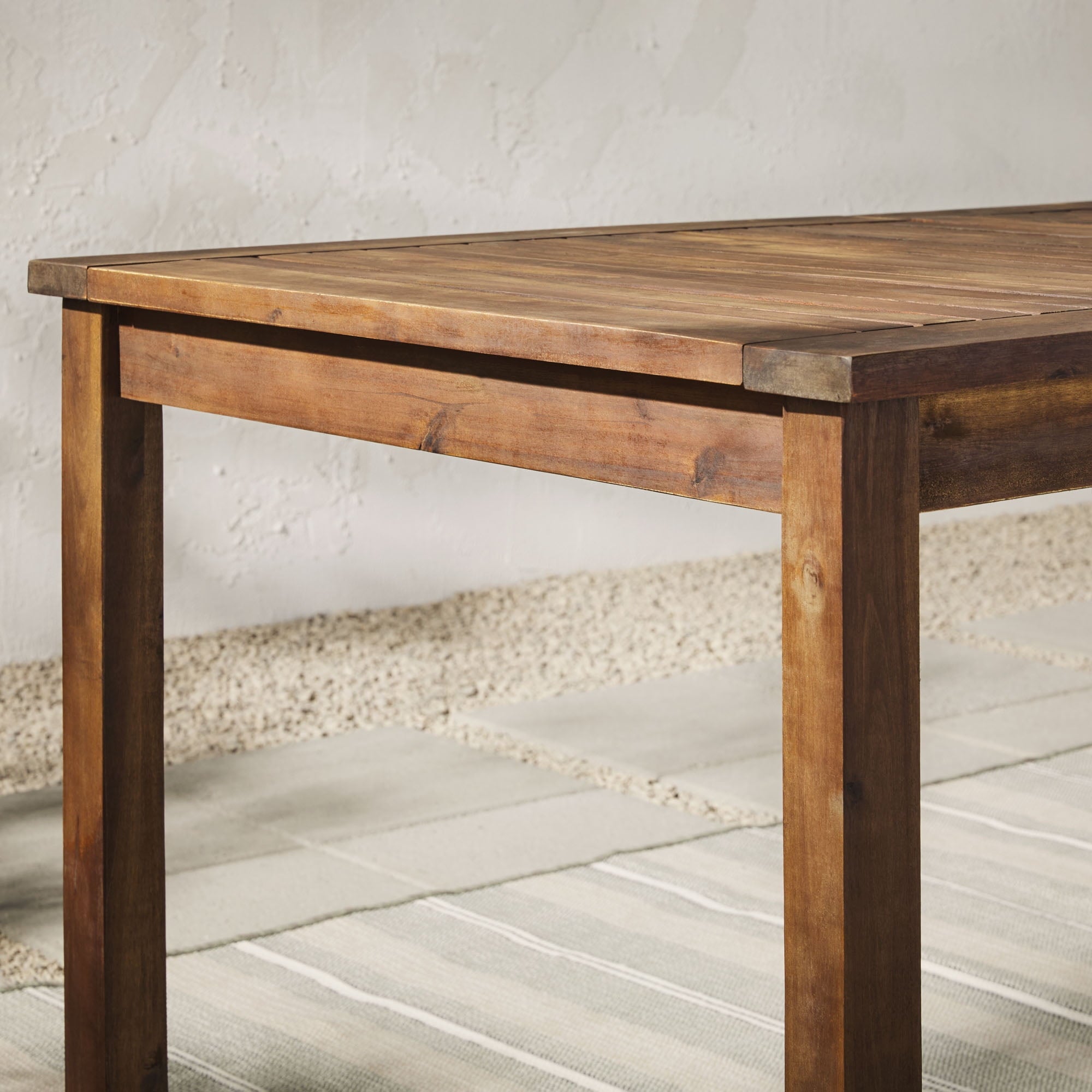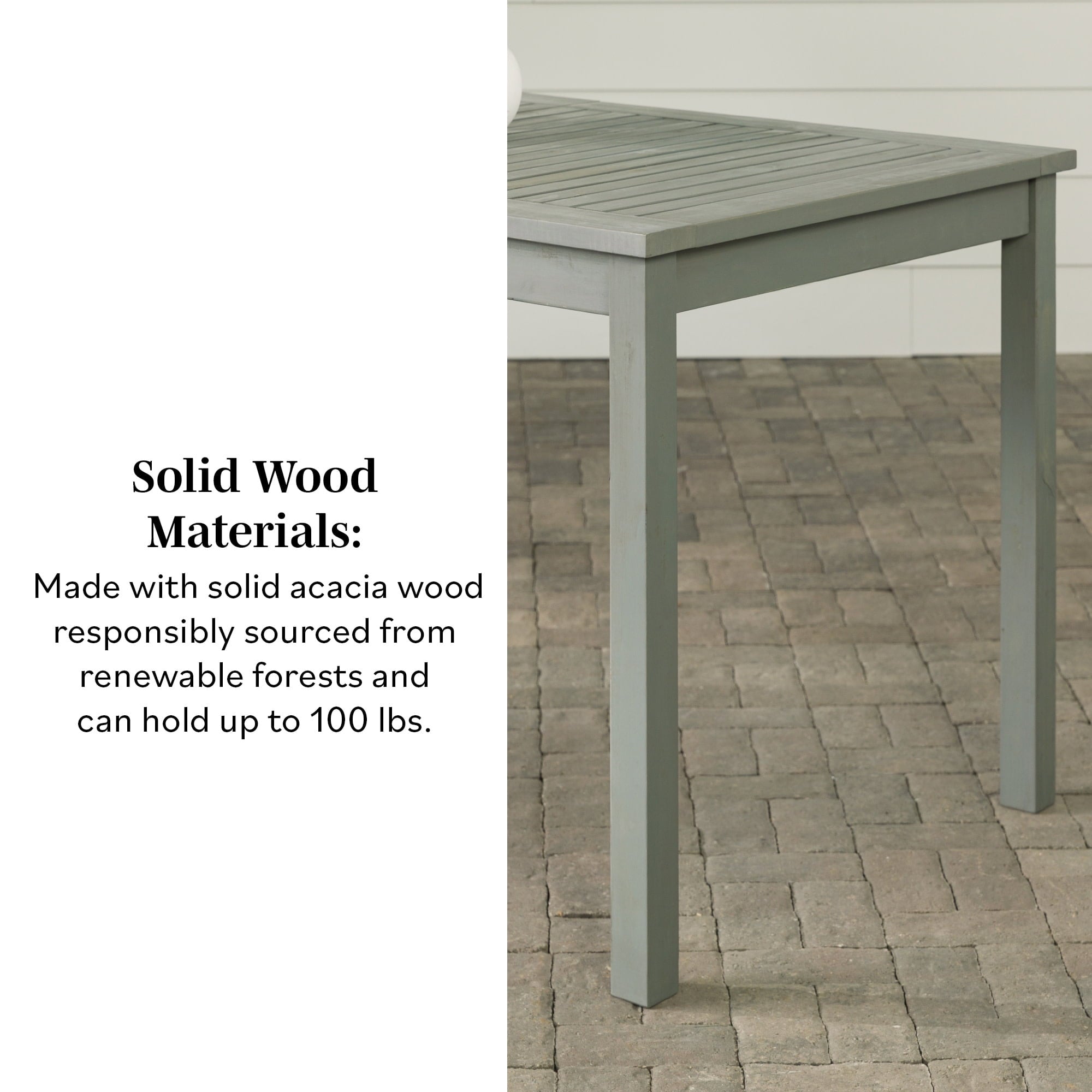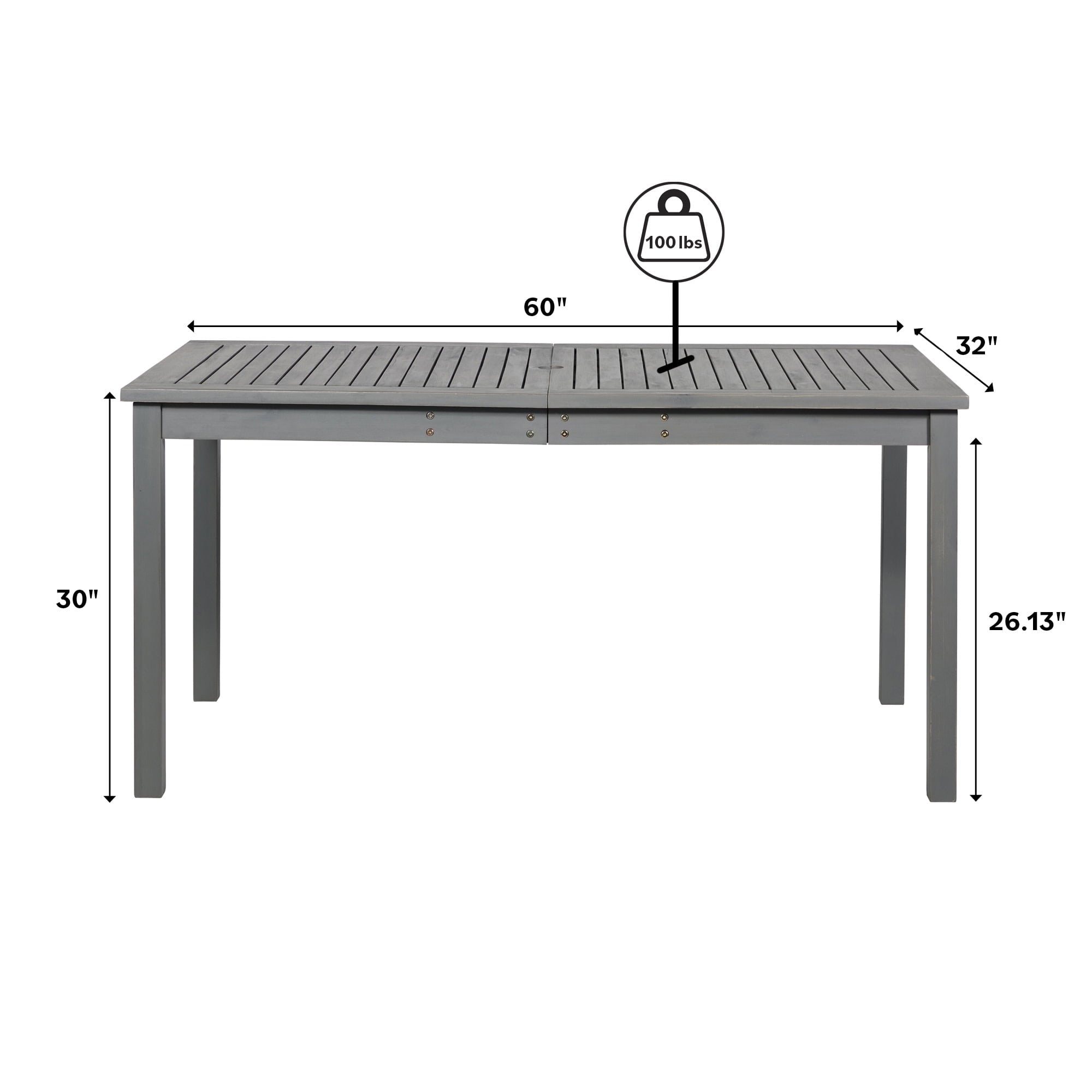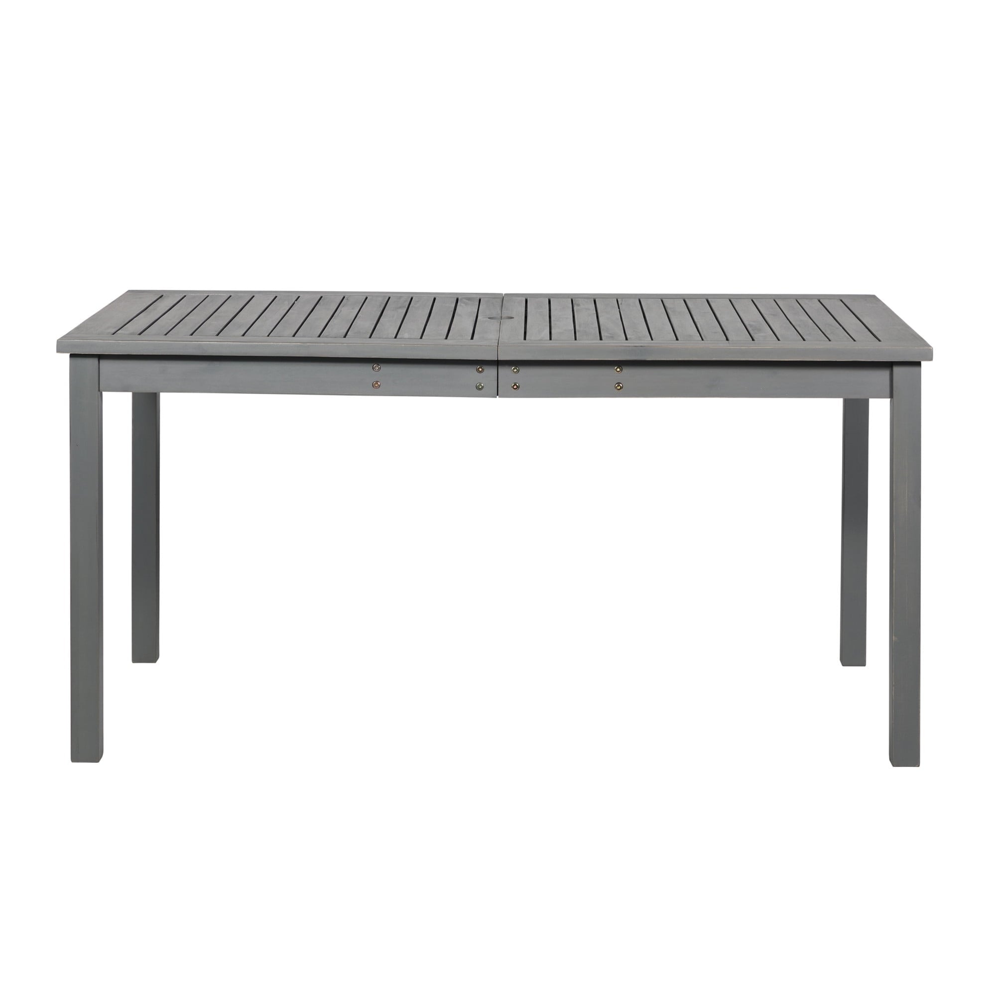 Create a simple yet inviting dining space on any deck or patio with this charming outdoor dining table. Constructed with a beautiful slatted surface from solid acacia hardwood, this table is naturally sturdy and stylish. If needed, place a large umbrella in the small, round opening in the center of the table for shade. Relax and enjoy the outdoors with this exceptional modern outdoor wood table.