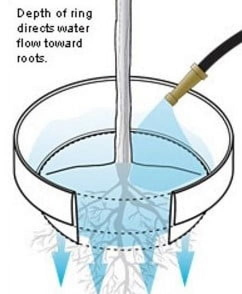 Planting Rings are available in 16-inch, 20-inch and 24-inch diameters and are the perfect product for water conscientious people who garden and landscape and want a no-fuss, perfectly round border around trees, shrubs, roses, plants or vegetables. Unlike most edging, Planting Rings do not require bending, staking or tools to create a round border. Planting Rings are non-eroding, watering basins that retain water until it can funnel to the deep root zone where it is needed most. The patented V-Groove anchors the Planting Ring into the soil, so it stays securely in place. The naturally, UV resistant, 100% recycled polypropylene protects trunks from weed whackers and provides a clean border between grass, trees and shrubs. Our water retention Planting Rings reduce surface evaporation, cut down on invasive weed growth and prevent hillside erosion. Planting Rings can also be adapted to couple irrigation systems. Planting Rings Sizes are. * 16” diameter for 1 gal. plants (holds 2 gal.) * 20” diameter for 5 gal. plants (holds 3 gal.) * 24” diameter for 15 gal. plants (holds 5 gal.)