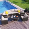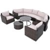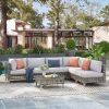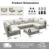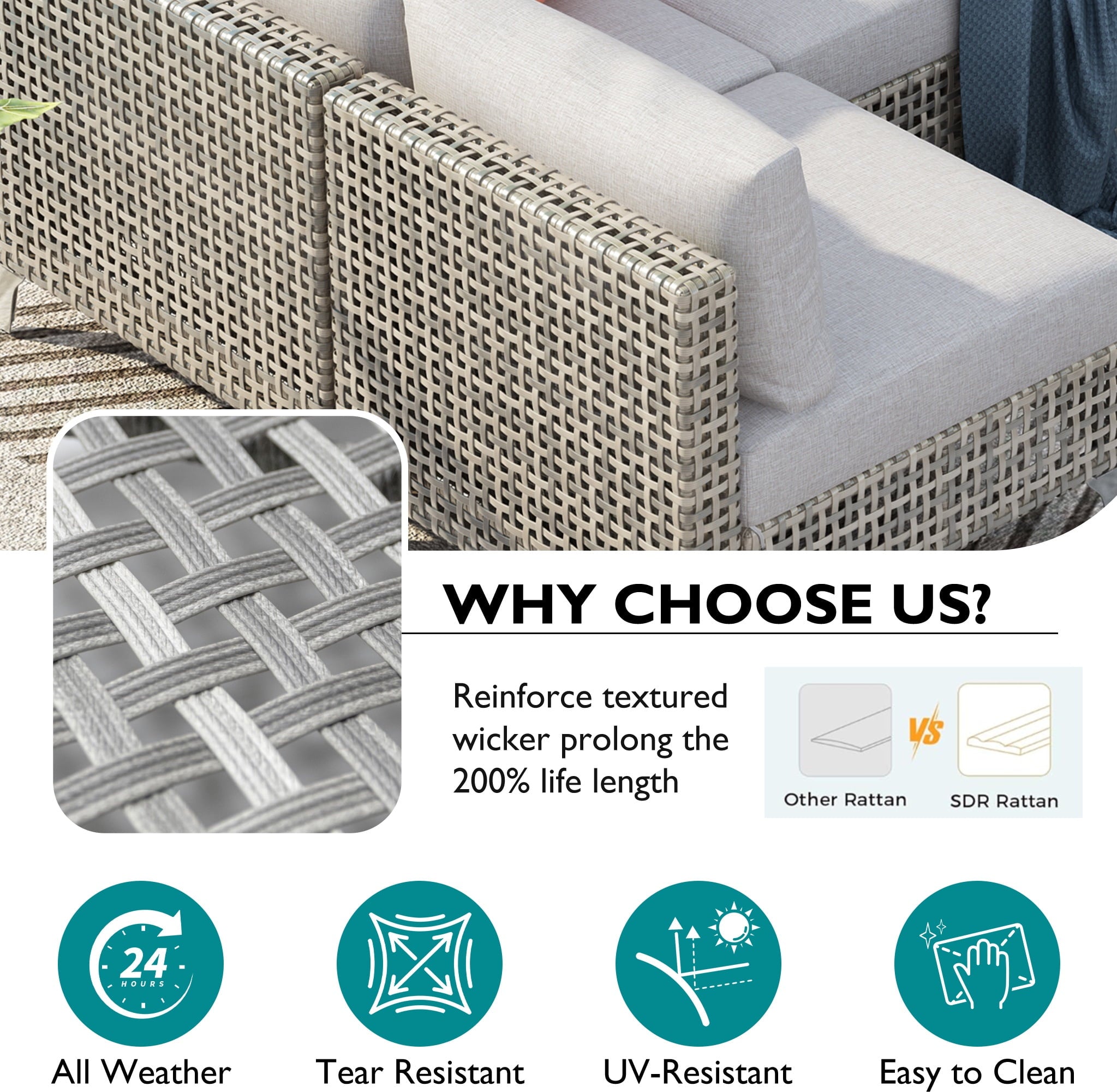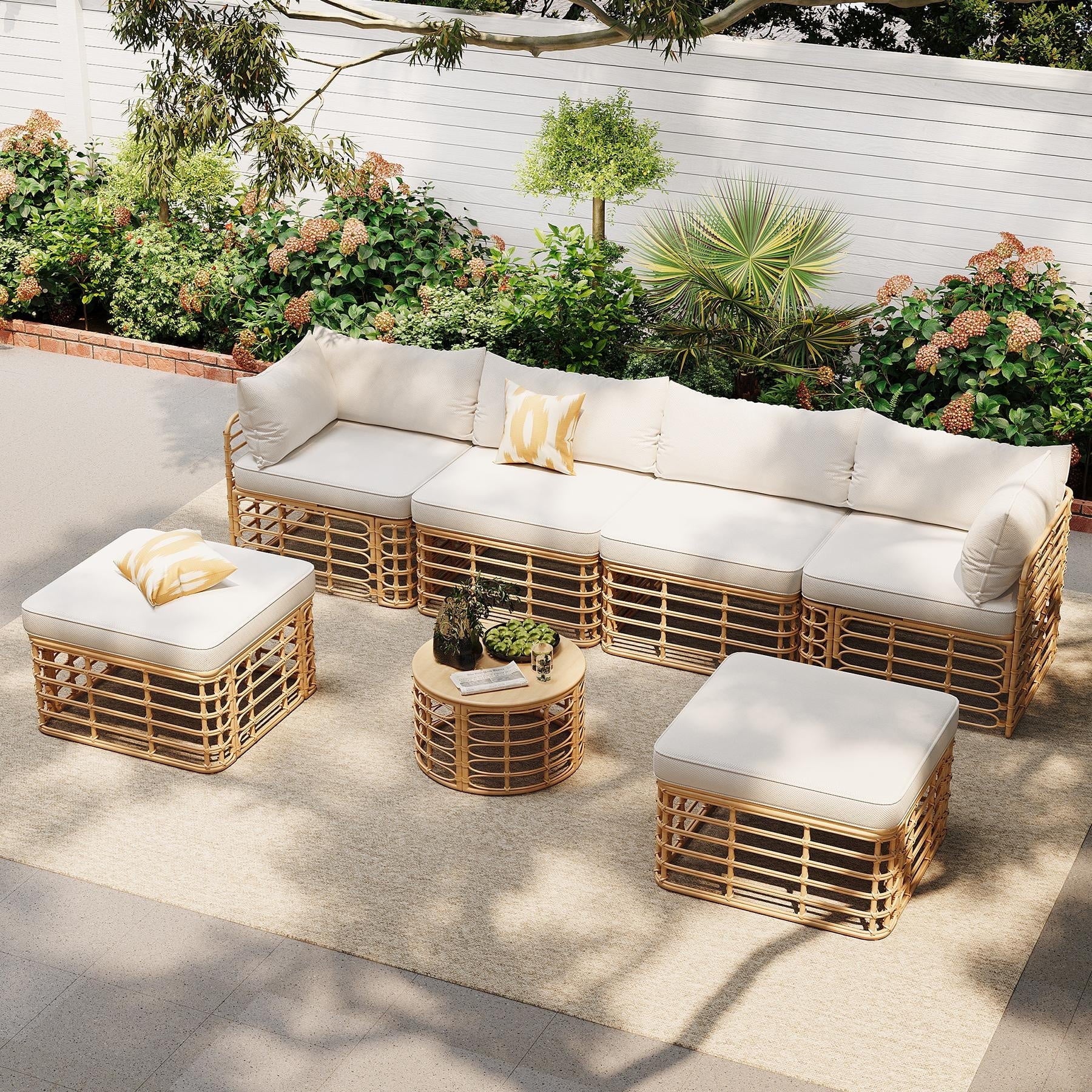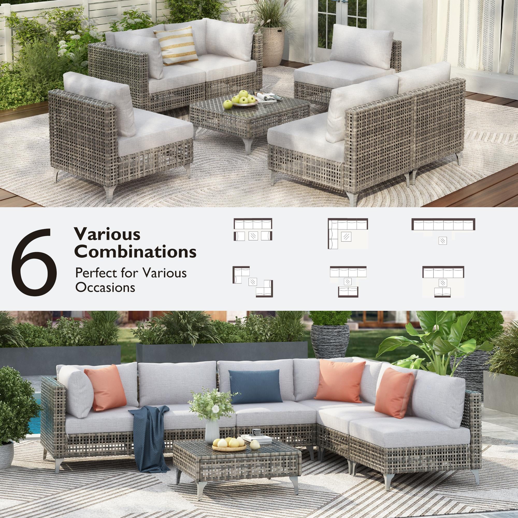 Ottoman of this 7-piece patio furniture can be used separately, and easily changed to different shapes for seating or lying. Offer a bonus seat cushion as a gift, The table can be an extra seating making this set a patio daybed; Ideal for an outdoor patio,