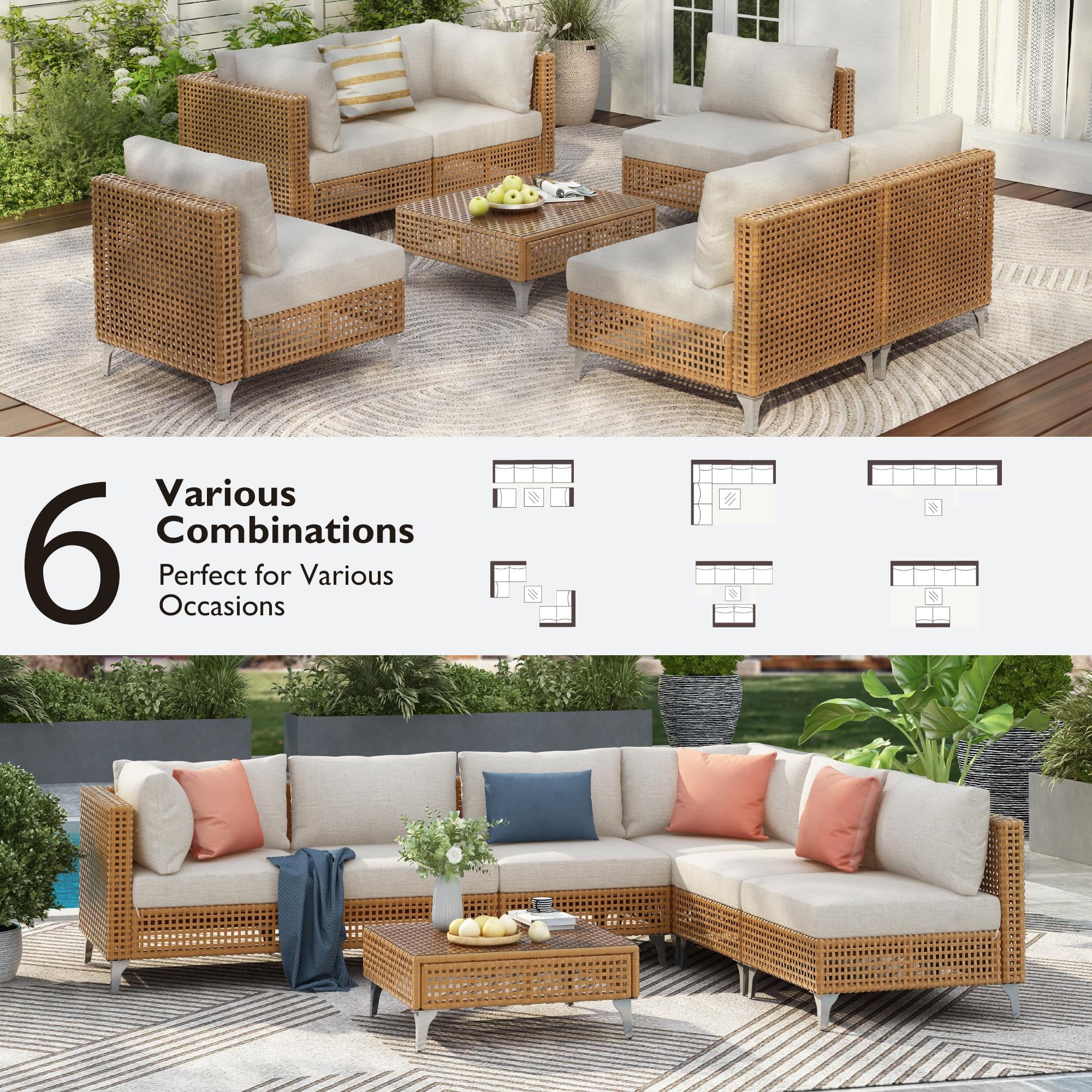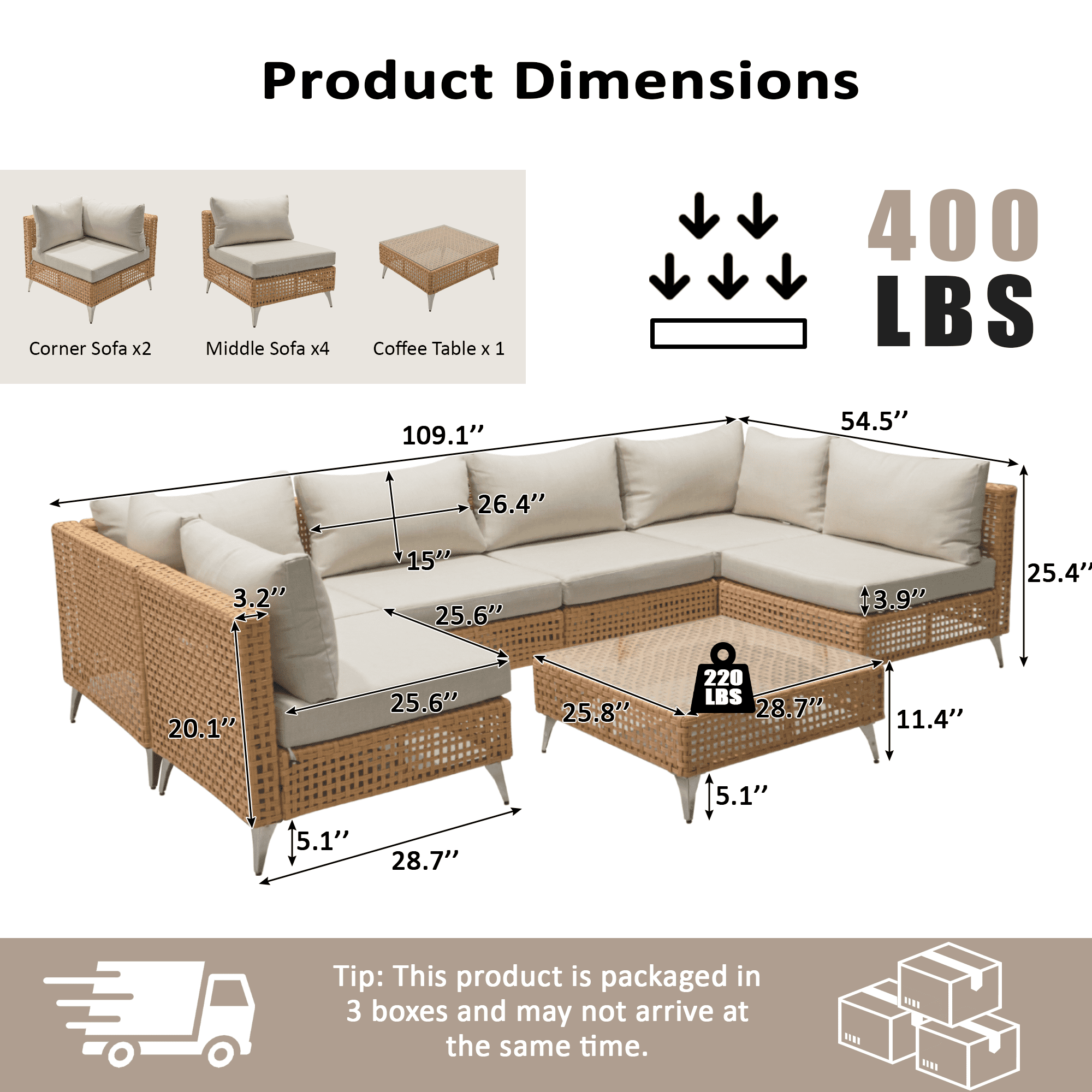 This 7-piece outdoor patio sectional furniture set adds the perfect experience to any outdoor space. Outdoor patio furniture set with solid construction is durable enough to bear the load. Properly using 7 components can combine different effects and give you extraordinary experiences. Perfect for patio, garden, backyard, poolside, balconies. We will lead you to experience unprecedented comfort and pleasure to be better at enjoying your leisure time.