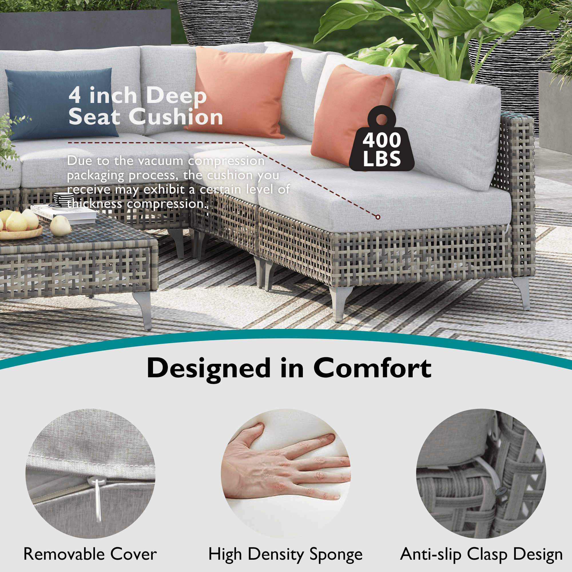 - 【Free Combination】 – The modern outdoor sectional sofas sets add decor to your patio, deck, backyard, porch, and even pool. It is easy to combine into different configurations according to your needs at any time. Enjoying your leisure afternoon tea time.