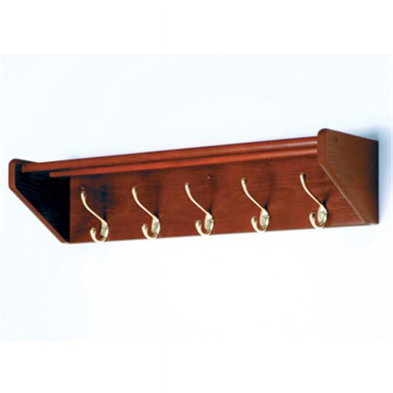 The simple design and attractive wood construction of this coat rack will make a delightful and handy accent for your home or office. The Five-Hook Coat and Hat Rack offers five durable double hooks for hanging coats, scarves, and umbrellas, as well as a slatted top shelf for hats or decorative accents. This coat rack is crafted from 3/4-inch solid red oak wood. It’s available in three attractive wood finishes to complement the furnishings in your bathroom, office lobby, entryway, mudroom, or wherever you mount it. Choose between brass or nickel hooks to coordinate with any decor style.