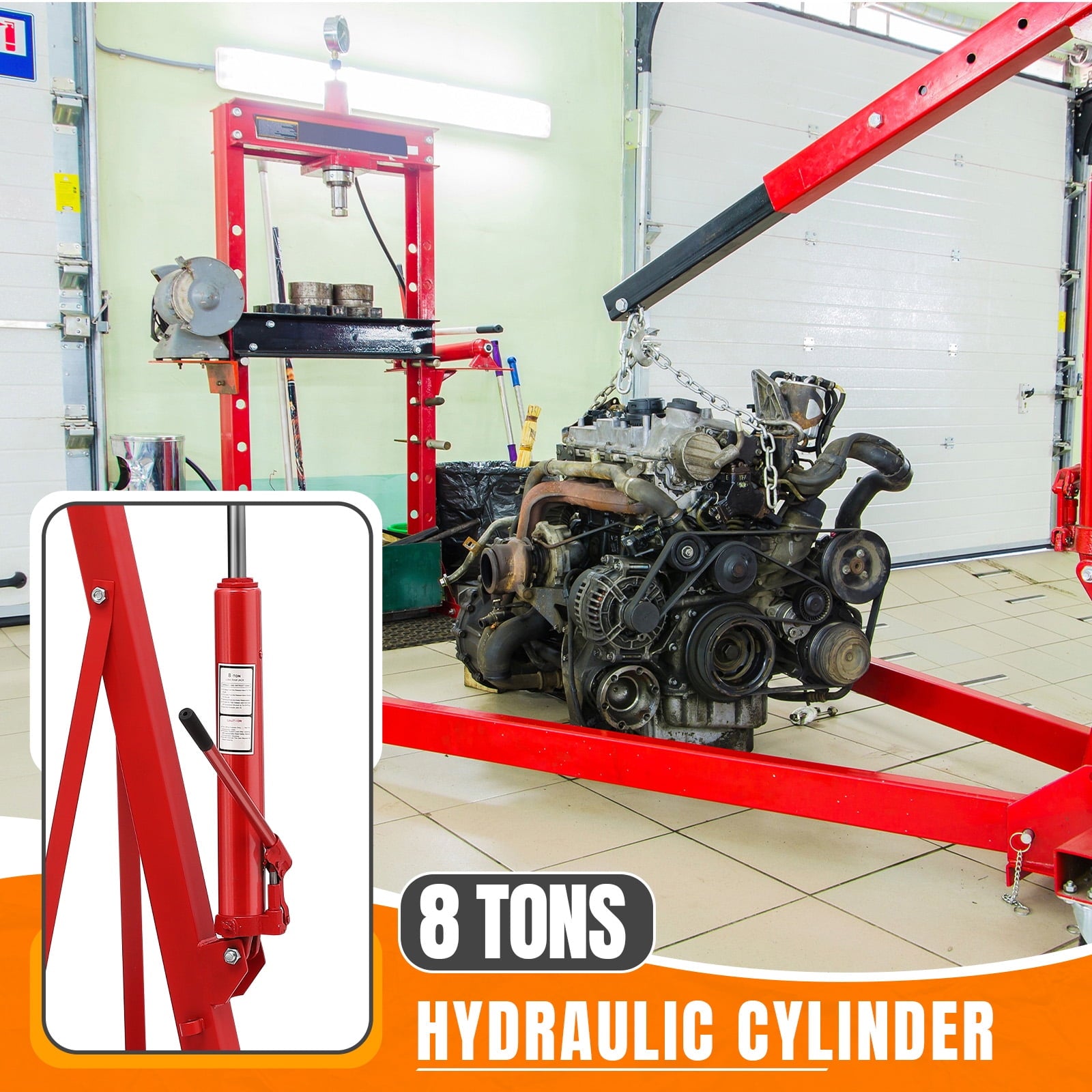 • Powerful 8-ton hydraulic pump delivers robust lifting power and reliable performance for heavy-duty engine lifting tasks