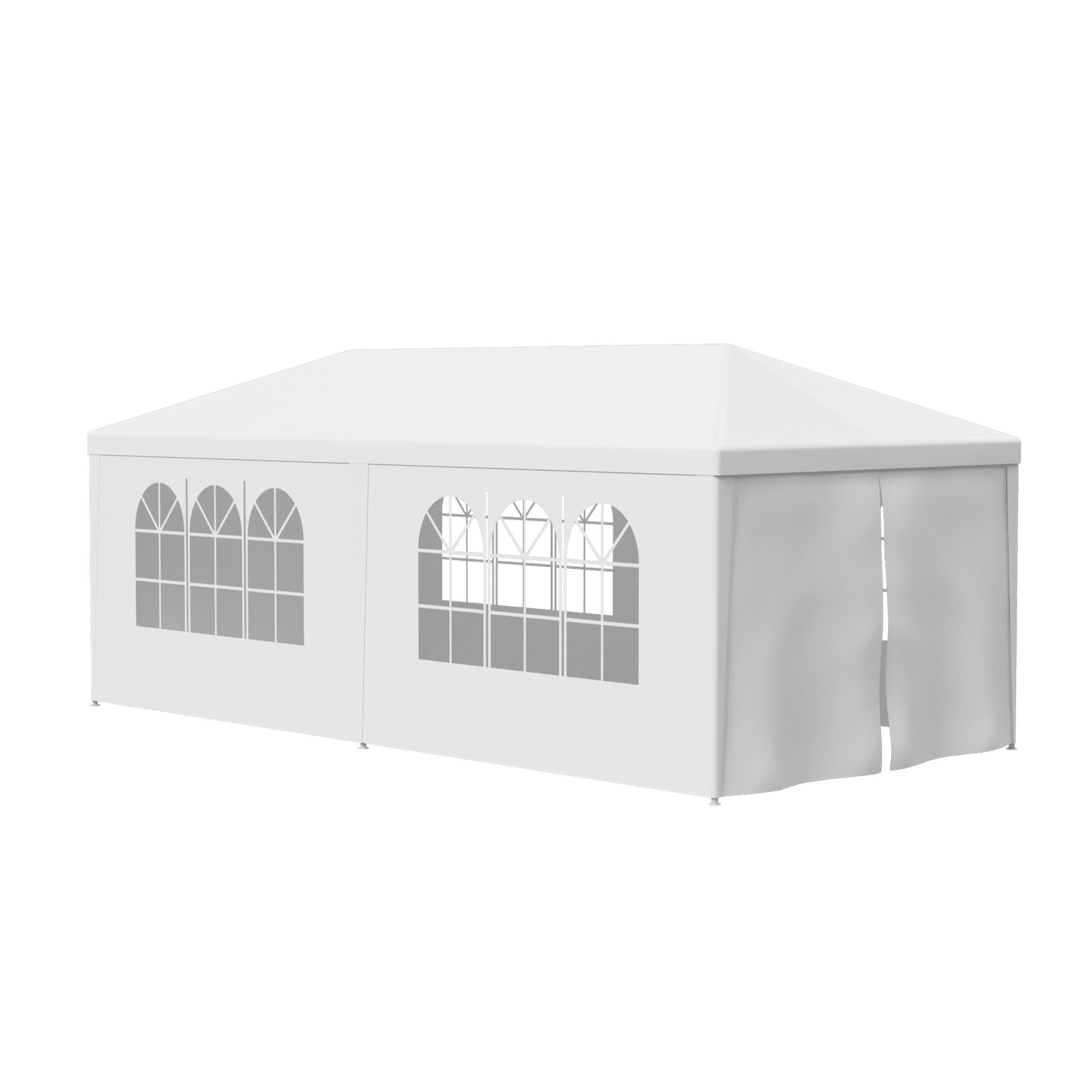 We are very proud to recommend our fantastic Party Tent. It’s useful and eye-catching for parties, celebrations, weddings, gatherings, etc. Featuring a durable waterproof polyethylene cover, it helps provide shelter from the elements. We are very proud to recommend our fantastic Party Tent. It’s useful and eye-catching for parties, celebrations, weddings, gatherings, etc. Featuring a durable waterproof polyethylene cover, it helps provide shelter from the elements, This party tent can set a wonderful atmosphere for a special occasion. It is ideal for weddings, parties, picnics, outdoor sales and much more The 4 window walls and 2 solid walls can be taken apart as you wish. This party tent is sun-resistant and little rain resistant, suitable for most event or parties. Beautiful decor on a wedding ceremony. It’s made of waterproof polyethylene and its walls are removable. And you can easily reassemble it with the manual in the package. What a brilliant Gazebo Canopy party tent it is, have a good time with it!!
